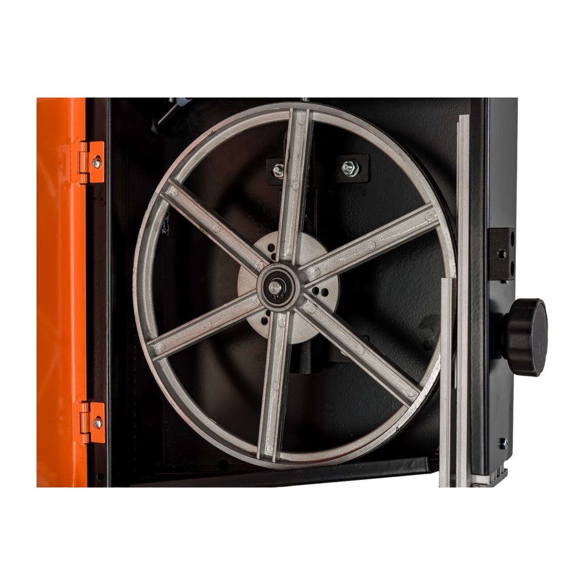 Возможность наклона стола позволяет расширить сферу применения ленточной пилы. Для сохранения чистоты на рабочем месте предусмотрена возможность подключения пылесоса.