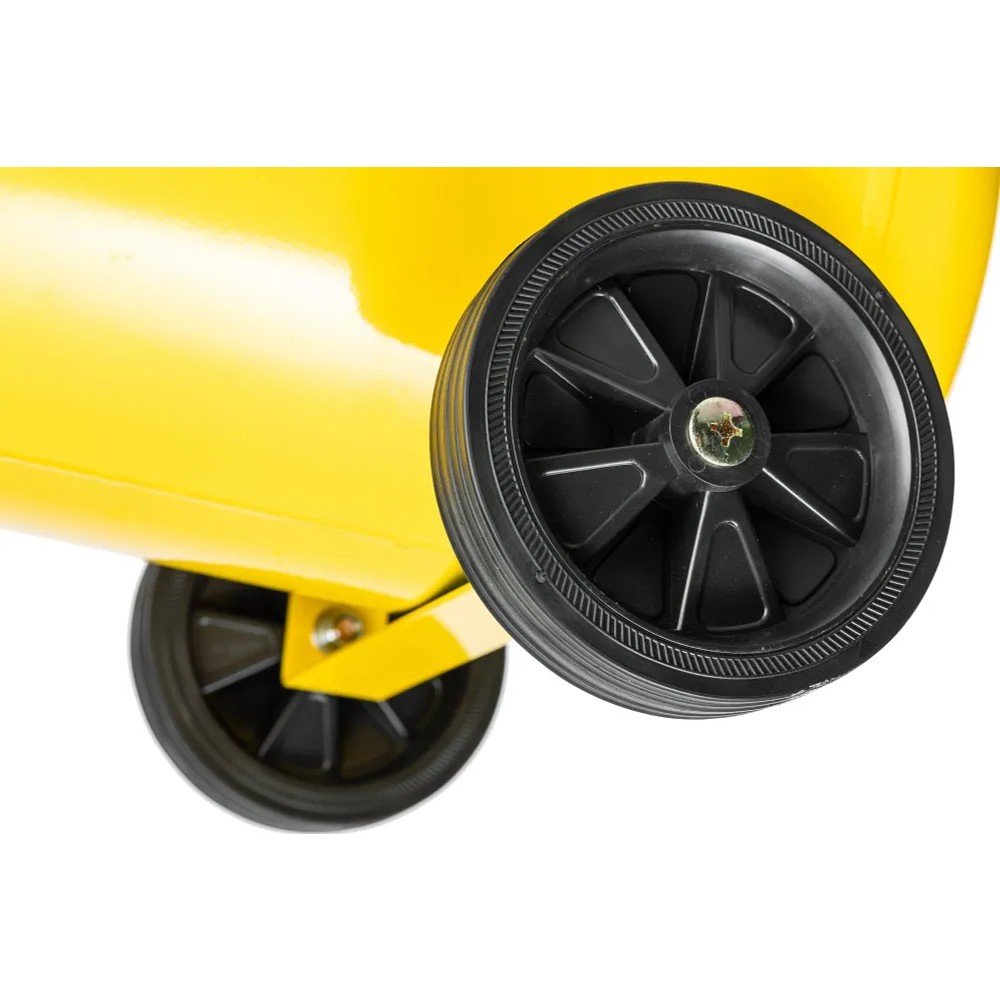 -передвижная конструкция с колесами и опорами облегчает перемещение компрессора по рабочей площадке;