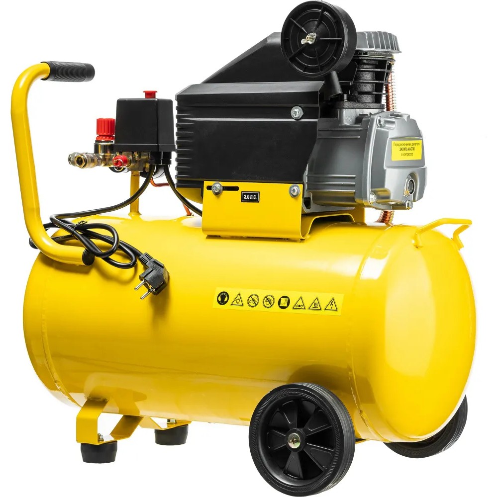 -емкость ресивера 50 л гарантирует длительное время работы без необходимости повторного запуска;