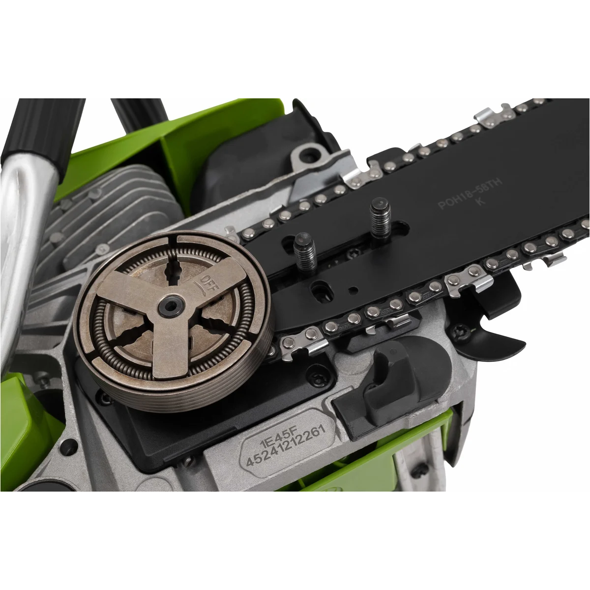 - Автоматическая система смазки цепи обеспечивает равномерную подачу масла для безопасной и эффективной работы.