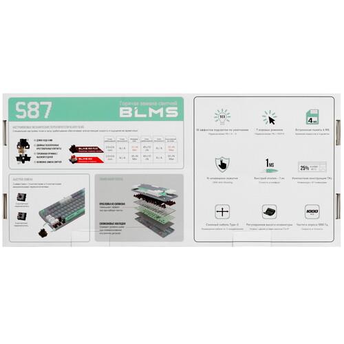 Клавиатура проводная A4Tech Bloody S87 Energy в пластиковом корпусе позволяет регулировать угол наклона для удобного размещения в любой плоскости. Мгновенный доступ к игровым опциям гарантируют программируемые кнопки. Тихое нажатие клавиш и уменьшение нагрузки на пальцы обеспечивают линейные переключатели Bloody BLMS Red Plus. Для управления интегрированной подсветкой достаточно воспользоваться клавишей Bloody key.