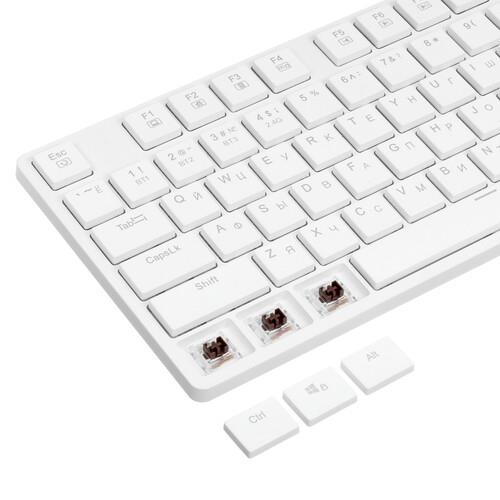 Клавиатура Redragon Anubis выполнена в элегантном белом корпусе с многоцветным освещением RGB, поэтому обеспечивает увлекательный и комфортный процесс игры. В данной модели установлены механические переключатели Outemu Tea, которые отличаются высокой чувствительностью, точностью обработки нажатий и сниженным уровнем шума. Низкопрофильная конструкция клавиш способствует быстрому отклику. К примечательным особенностям Redragon Anubis относится возможность проводной (кабель USB) и беспроводной (технология Bluetooth) синхронизации с ПК.