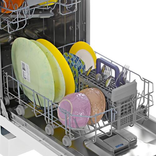 Beko BDFS26020W обладает двумя настраиваемыми по высоте корзинами для посуды, отдельной корзиной для столовых приборов и полочками для чашек. ПММ подключается к холодной воде, позволяет выбирать степень нагрева в пределах 35-70 °C. На дисплее отображается информация о работе и активных функциях, наличии соли и ополаскивателя. Высота корпуса 85 см позволяет устанавливать модель под столешницу.