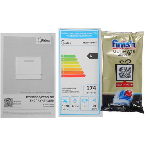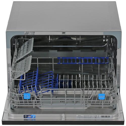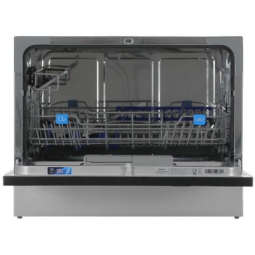 Посудомоечная машина Midea MCFD55S460Si с размерами 55x50x43.8 см предусматривает размещение на столе. Она оснащена 7 автоматическими программами с разной продолжительностью цикла и температурой нагрева воды. Выдвижная корзина вмешает 6 комплектов посуды. Антибактериальный фильтр предотвращает размножение бактерий и микроорганизмов.