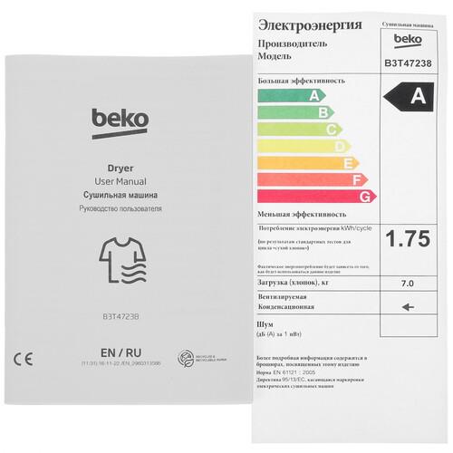 Панель управления с дисплеем помогает легко настраивать необходимые программы и параметры сушки. Подсветка барабана позволяет контролировать процесс сушки. Таймер отложенного запуска предусматривает установку определенного времени запуска Beko B3T47238. Система антисминания после сушки упрощает глажку вещей.