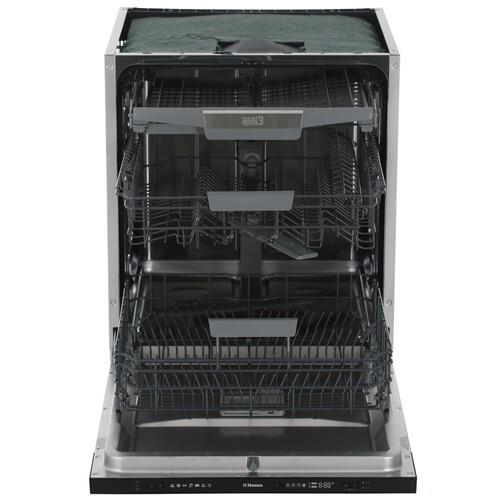 Встраиваемая посудомоечная машина Hansa ZIM667ELH на 14 комплектов посуды оснащена тремя регулируемыми по высоте корзинами и лотком для столовых приборов. Вы можете использовать 7 программ мойки, режим замачивания и таймер отсрочки на 24 часа. За 1 цикл ПММ потребляет 747 Вт·ч и 9.8 л воды.