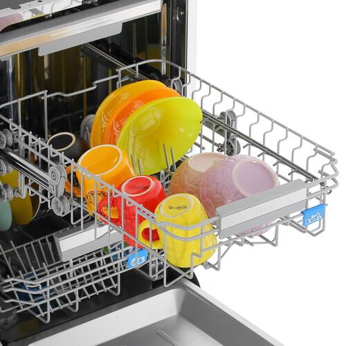 Встраиваемая посудомоечная машина Midea MID45S350i осуществляет бережную очистку столовых принадлежностей из хрупких материалов, снижает расходы на водо- и энергоснабжение, удаляет стойкие пятна. Достаточно выбрать подходящую среди 9 программ. Доступ к параметрам открывается через кнопочную панель или приложение MSmartHome. Заданные настройки транслируются на дисплее.