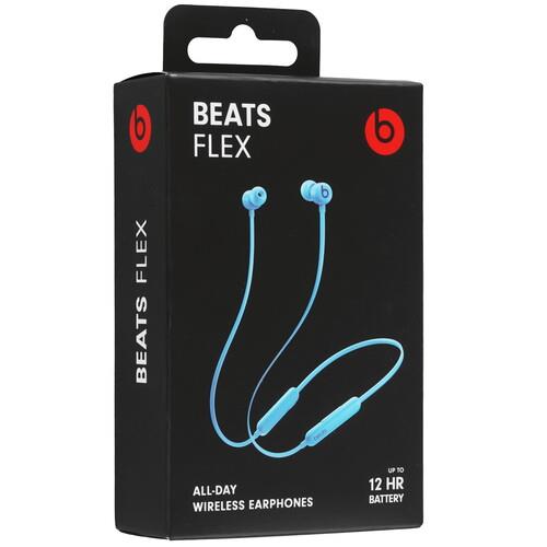 Беспроводные наушники Beats Flex – All-Day представлены в голубом цвете. Они комфортны в использовании благодаря подключению по технологии Bluetooth, мягким силиконовым вкладышам и магнитному креплению. Плоский кабель предотвращает спутывание.