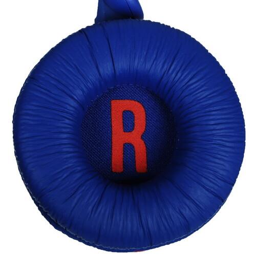 Имеющая «детский» дизайн Bluetooth-гарнитура JBL JR310BT безопасна для юных слушателей. Уровень шума, производимого наушниками, не превышает 85 дБ. Устройство подходит для детей, возраст которых достиг 3 лет. Модель укомплектована наклейками для персонализации. Гарнитура эффектно выглядит благодаря броскому сочетанию синего и красного цветов.