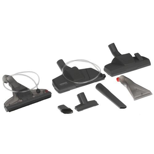 Вода заливается в бак с емкостью 1.8 л. Его объема достаточно для полноценного использования пылесоса. Вместе с данной моделью поставляется комплект насадок, они будут полезны во время уборки.