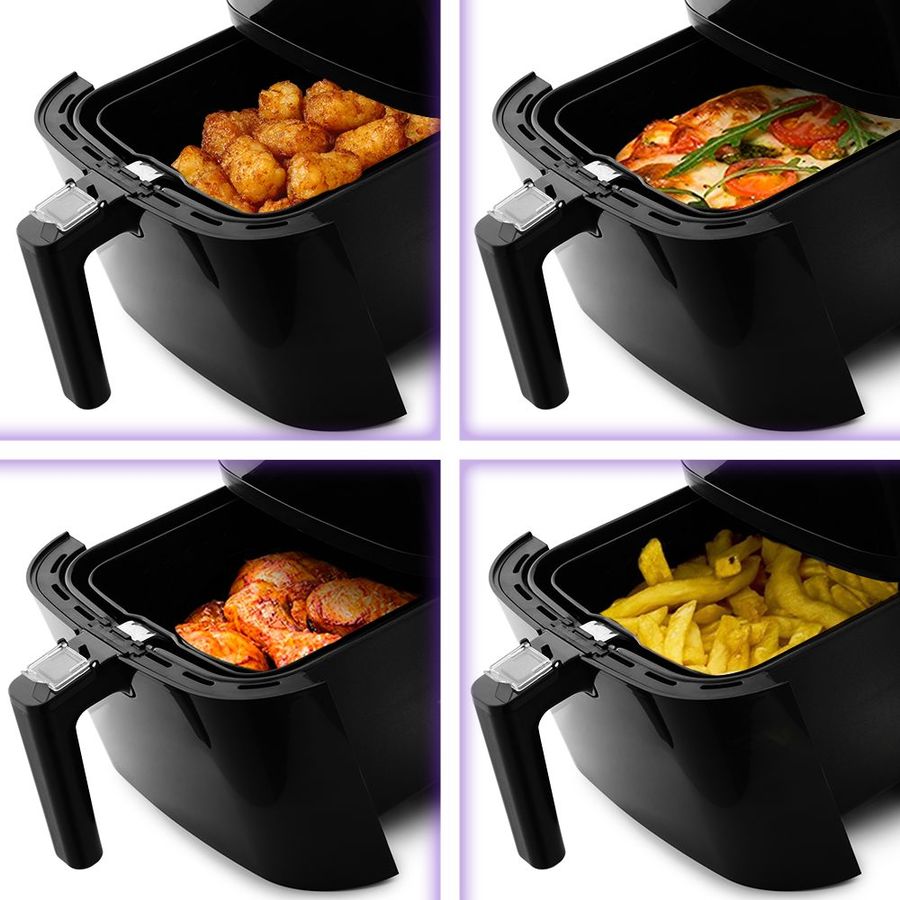 Описание: Аэрогриль, аэрофритюрница и духовка. Позволяет готовить большинство продуктов с минимальным количеством масла или вовсе без его добавления. Благодаря циркуляции горячего воздуха, продукты обжариваются со всех сторон, получаясь при этом нежными внутри и с хрустящей корочкой снаружи. Аэрогриль оснащён электронным управлением, он имеет 5 автоматических программ. Каждая программа имеет свою температуру приготовления, время готовки задаётся автоматически, исходя из веса продуктов. В инструкции представлены рецепты разнообразных блюд. Съёмный поддон и корзина имеют антипригарное покрытие, благодаря чему они легко чистятся после использования, а блюда можно готовить практически без добавления масла.