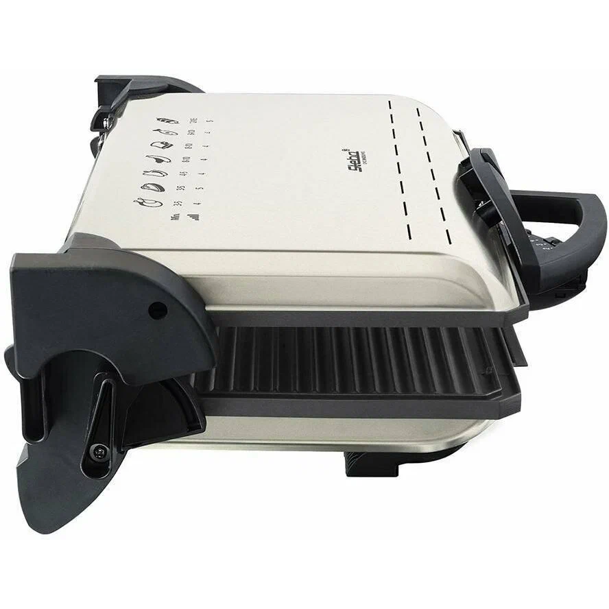 съемные панели; замок на ручке гриля; рабочая поверхность 37х23 см; в комплекте 2 пластины рифлёная/гладкая