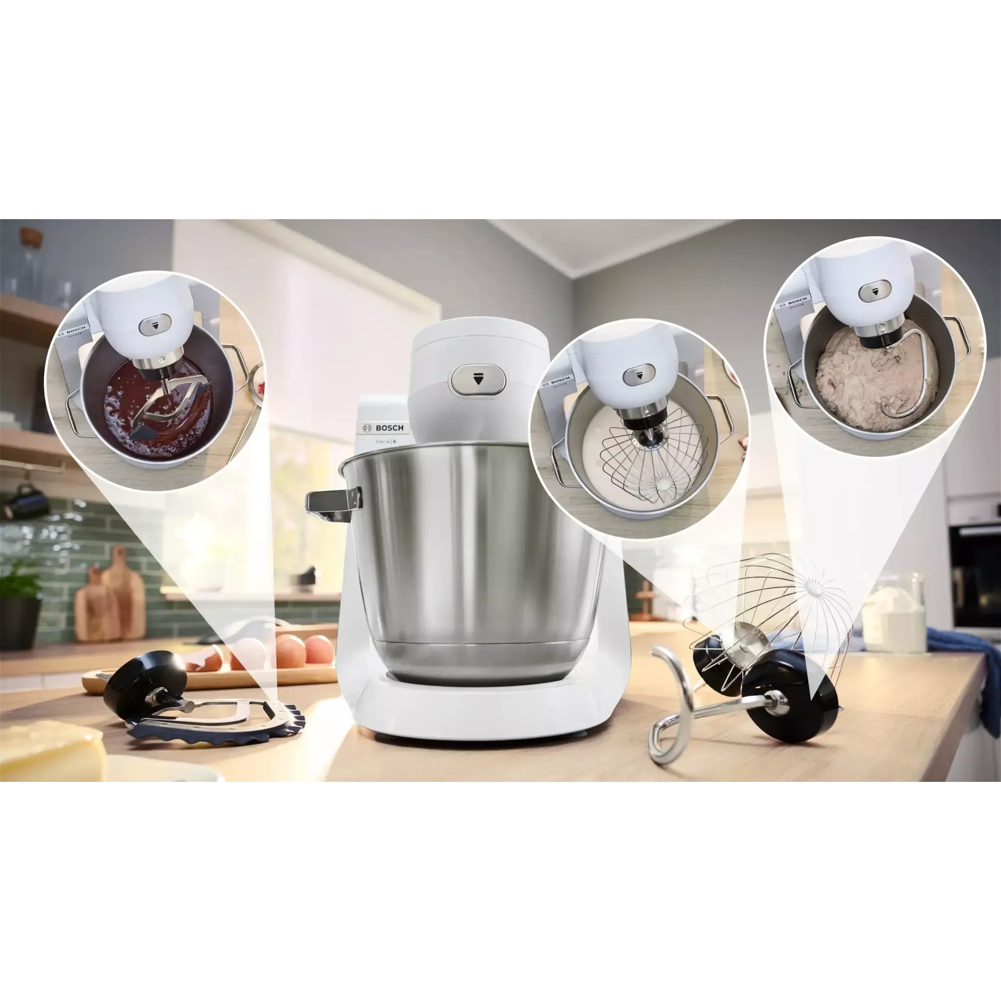 Кухонный комбайн 1600 Вт Белый, Матовая нержавеющая сталь