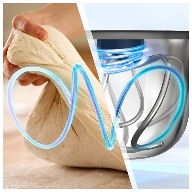 Благодаря планетарному вращению миксера Multi-motion-drive удаётся получить максимально однородные смеси. А особый рычаг для крепления аксессуаров помогает заменить их парой простых движений.
