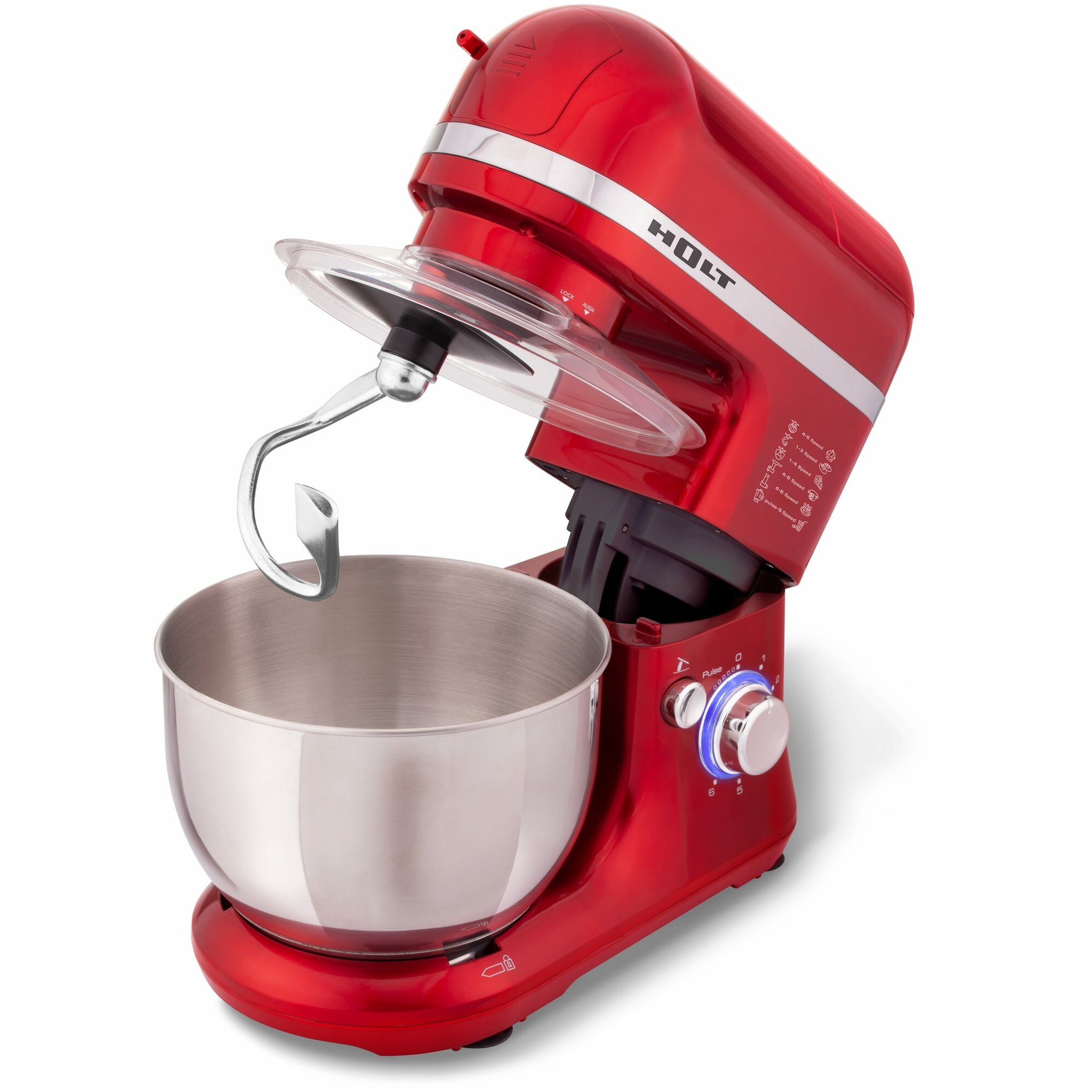 Миксер с 3 насадками и чашей из нержавеющей стали с прозрачной пластиковой крышкой