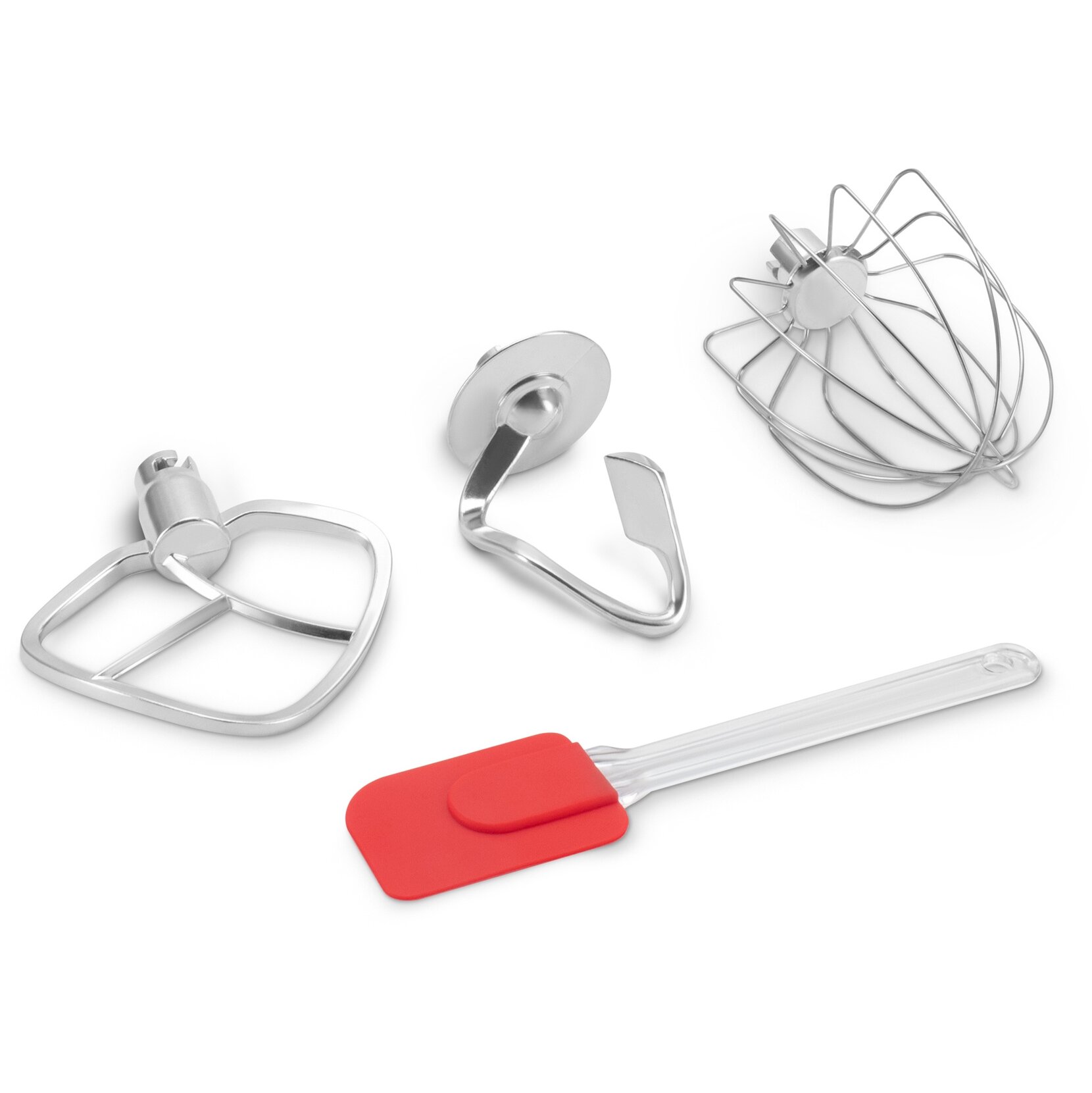 3 насадки в комплекте. В комплектацию планетарного миксера входят венчик, лопатка и крюк, что обеспечивает возможность качественного смешивания и взбивания смесей различной густоты.