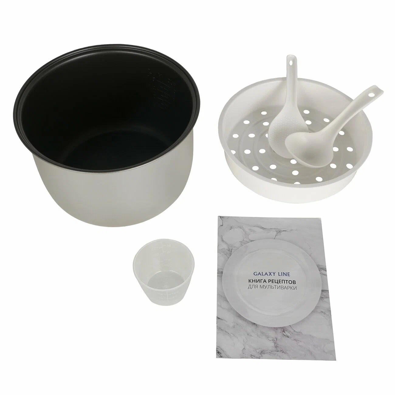 Съёмный контейнер для сбора конденсата, съемная чаша, емкость для приготовления на пару, ложка, мерный стакан, половник, шнур питания