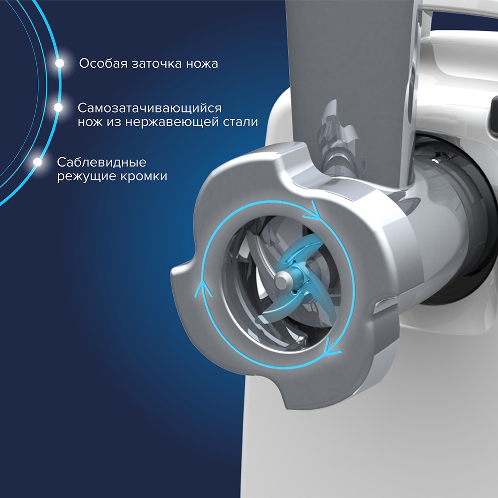Функция «реверс» для предотвращения наматывания жилок на шнек