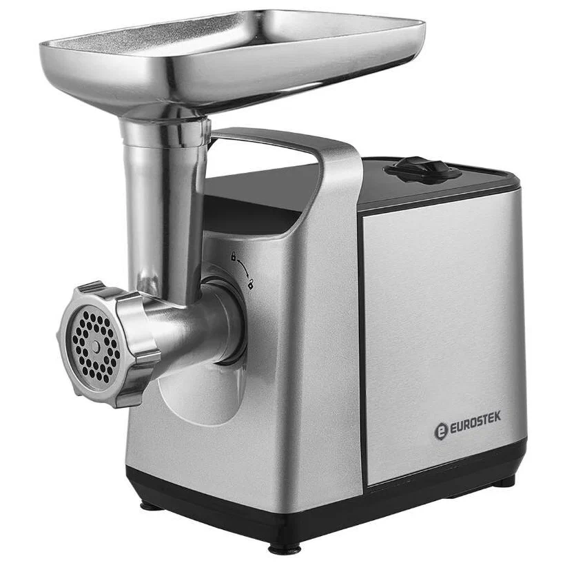 Мощность: 2000 Вт. Производительность - кг/мин. Количество скоростей 1. Реверс. Защита двигателя от перегрузки. Материал лотка: Литой алюминий. Материал корпуса: Пластик + металл. 3 решетки для фарша из нержавеющей стали ( 3, 5, 7 мм). Насадка для колбас, насадка Кеббе. Цвет Серебристый
